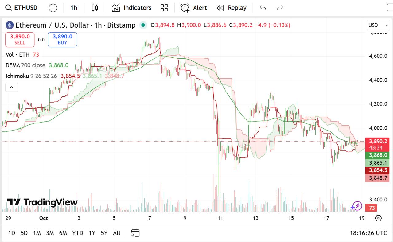 Ethereum is at $3,875.18 today, up 1.92% over the last 24 hours. Market capitalization is at $467.72 billion, while trading volume is at $39.06 billion, down 36.99%. This decline has not impacted long-term sentiment. Ethereum remains the backbone of decentralized finance (DeFi), non-fungible tokens (NFTs), and staking protocols that constitute blockchain infrastructure.