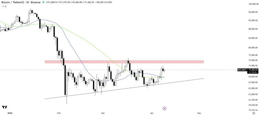 As of April 9, 2026, Bitcoin (BTC) price is moving within a critical range as market momentum slows and traders watch key technical levels. The broader trend remains under focus as analysts assess whether the current structure will lead to continuation or reversal.