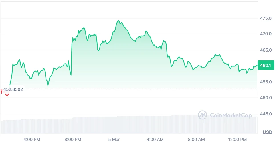 On Thursday, February 5, 2026 Bitcoin Cash (BCH) is trading at $460, marking a 0.97% increase in a day. The trading volume is showing a strong bullish surge, up 27.44%, and is currently standing at $456.37 million. Over the last week, the BCH coin price has decreased by 7.64%, according to CoinMarketCap.