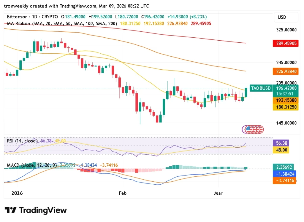On March 9, 2026, a well-known crypto analyst, World Of Charts, stated that the token’s movements around the $200 price level would be a determining factor for the acceleration of its short-term gains. “If TAO breaks above $200, the way to $250 gets more likely. Failing to do so may cause short-term consolidation.”