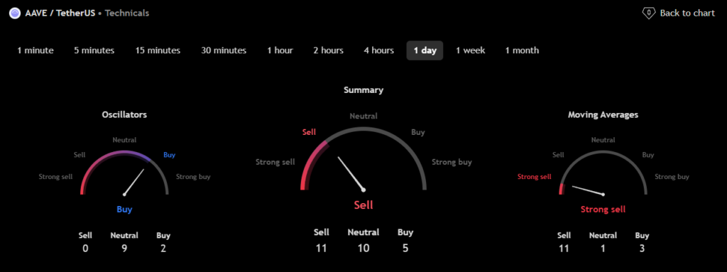 The technical analysis indicators such as Relative Volume (RVOL), Moving Average (MA), and Relative Strength Index (RSI) of Aave (AAVE) are shown in the chart below.