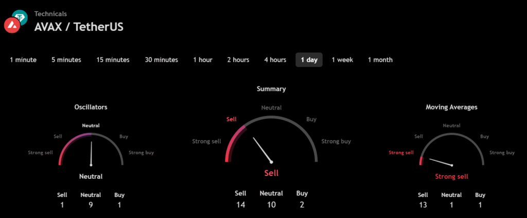 The technical analysis indicators such as Relative Volume (RVOL), Moving Average (MA), and Relative Strength Index (RSI) of Avalanche (AVAX) are shown in the chart below.