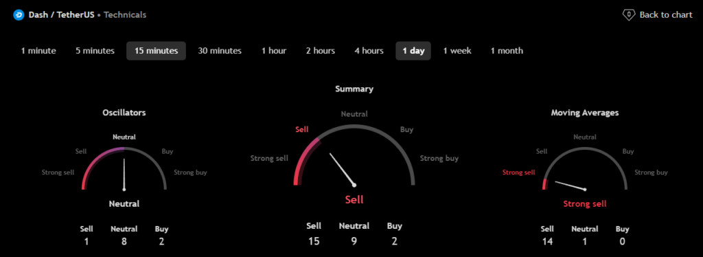 The technical analysis indicators such as Relative Volume (RVOL), Moving Average (MA), and Relative Strength Index (RSI) of Dash (DASH) are shown in the chart below.