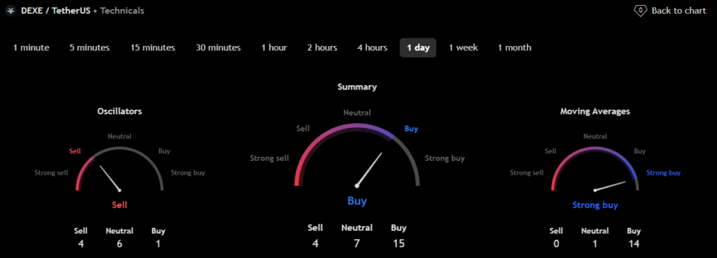 The technical analysis indicators, such as Relative Volume (RVOL), Moving Average (MA), and Relative Strength Index (RSI) of DeXe (DEXE) are shown in the chart below.