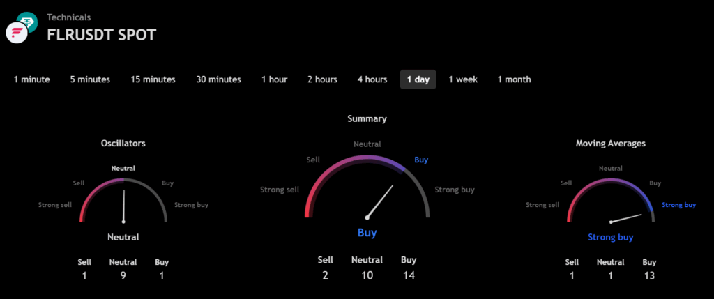 From the readings on the chart above, we can make the following inferences regarding the current Flare (FLR) market in 2025.