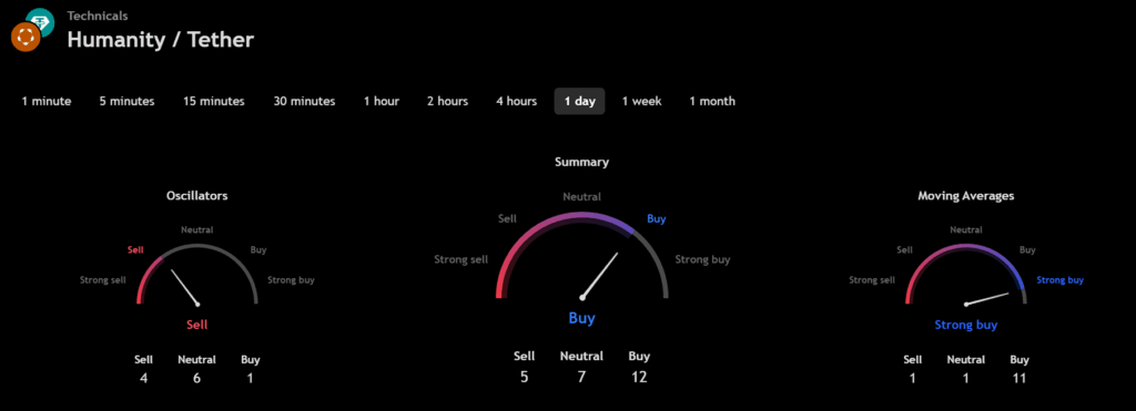 The technical analysis indicators such as Relative Volume (RVOL), Moving Average (MA), and Relative Strength Index (RSI) of Humanity Protocol (H) are shown in the chart below.