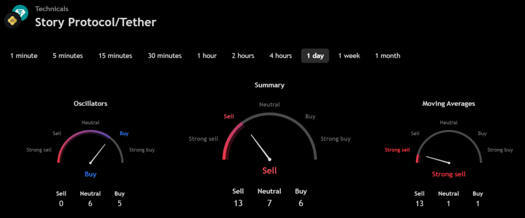 From the readings on the chart above, we can make the following inferences regarding the price momentum of Story (IP).