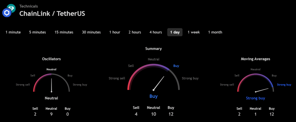 The technical analysis indicators such as Relative Volume (RVOL), Moving Average (MA), and Relative Strength Index (RSI) of Chainlink (LINK) are shown in the chart below.
