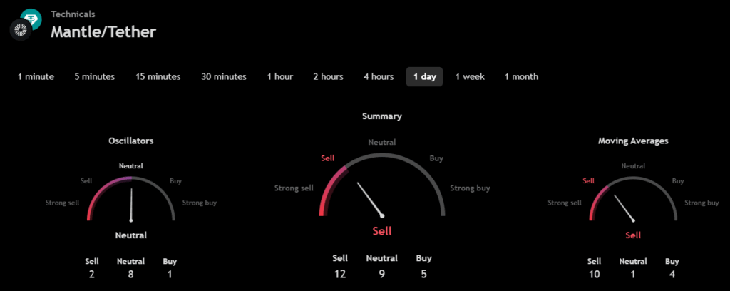 The technical analysis indicators such as Relative Volume (RVOL), Moving Average (MA), and Relative Strength Index (RSI) of Mantle (MNT) are shown in the chart below.
