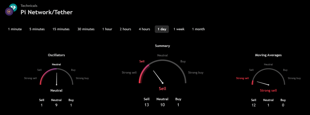 The technical analysis indicators such as Relative Volume (RVOL), Moving Average (MA), and Relative Strength Index (RSI) of Pi (PI) are shown in the chart below.