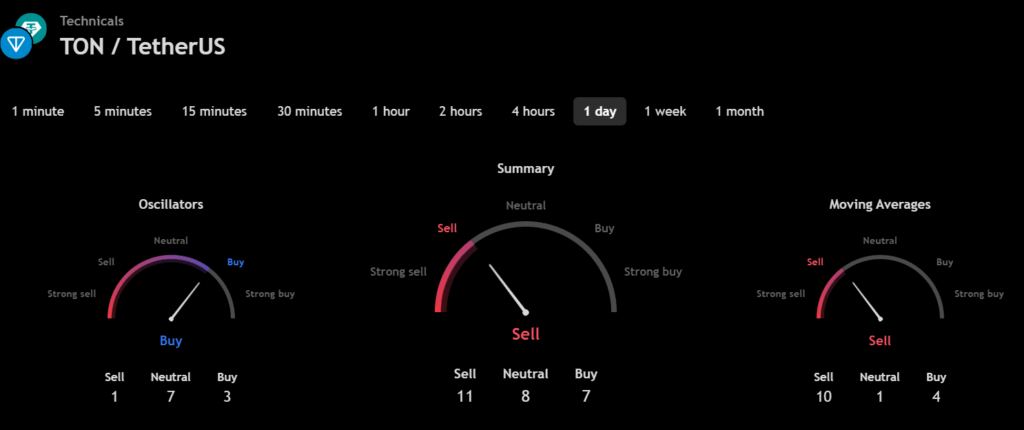 From the readings on the chart above, we can make the following inferences regarding the price momentum of Toncoin (TON).