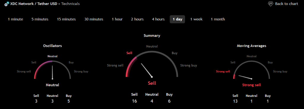 The technical analysis indicators such as Relative Volume (RVOL), Moving Average (MA), and Relative Strength Index (RSI) of XDC Network (XDC) are shown in the chart below.