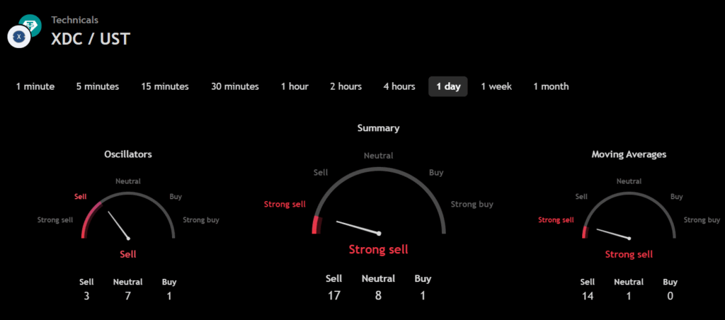 The technical analysis indicators such as Relative Volume (RVOL), Moving Average (MA), and Relative Strength Index (RSI) of XDC Network (XDC) are shown in the chart below.