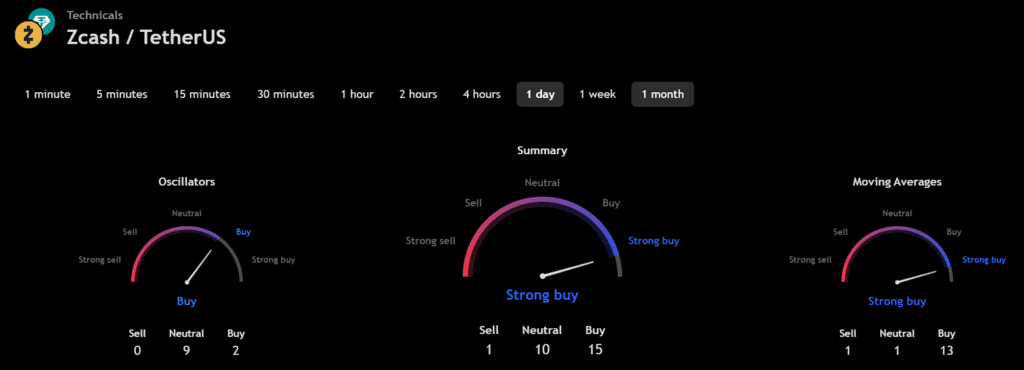 From the readings on the chart above, we can make the following inferences regarding the price momentum of Zcash (ZEC).