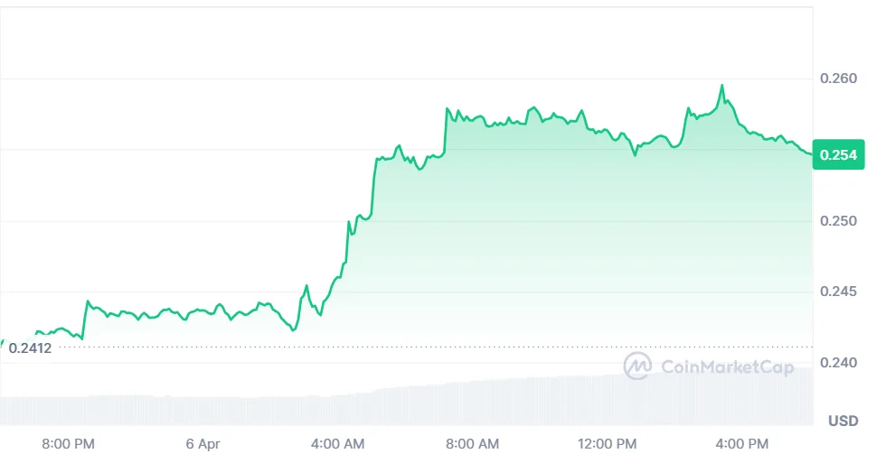 As of writing, Cardano (ADA) price is trading at $0.2546, marking a 5.42% increase in the past day. The trading volume is showing a strong bullish surge, up 100.7%, and is currently standing at $515.84 million. Over the last week, the ADA price has gone up by 1.55%, according to CoinMarketCap.