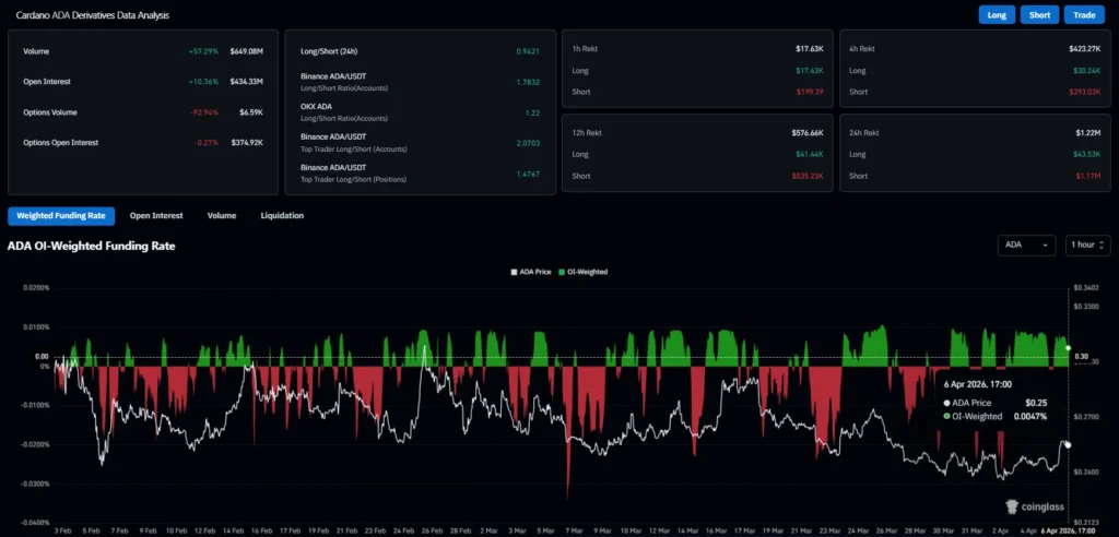 CoinGlass data shows rising trading activity. The future volume has surged 57.29% to $649.08 million. Open interest has grown 10.36% to $434.33 million. The OI-weighted funding rate stands at 0.0047%.