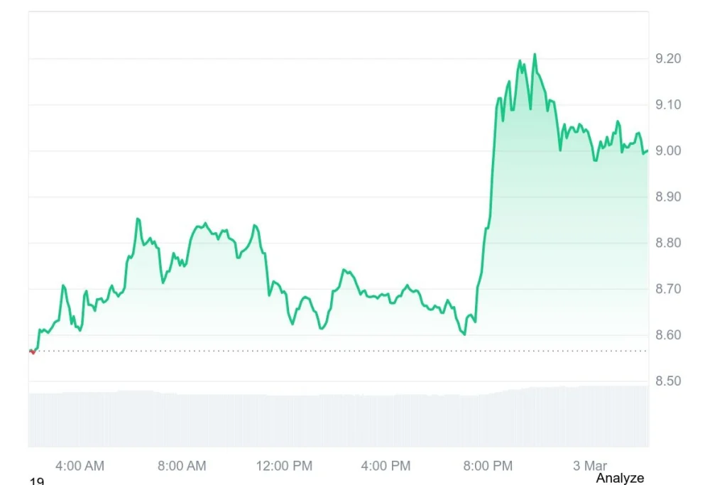 LINK rose 4.97% to $8.99, according to CoinMarketCap as of March 3, 2026. The token’s 24-hour trading volume climbed to $853.83 million, a 13.93% increase, reflecting heightened investor activity. Over the past week, LINK’s price has gained 8.22%, showing signs of renewed bullish sentiment following a recent downtrend.