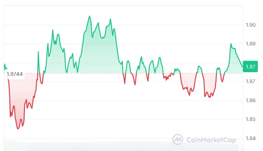 At the time of writing, Cosmos (ATOM) is trading at $1.87, with a 24-hour trading volume of $75.63 million and a market cap of $933 million, according to CoinMarketCap data. The ATOM has recorded a modest increase of 1.16% over the last 24 hours, suggesting some stability after a period of decline.