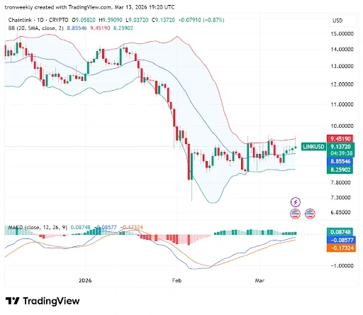 According to Trading, LINK is transitioning from a strong bearish fall into a neutral, range-bound position. The cryptocurrency has stabilized after its sell-off in February, when it fell from $13.00 to $7.30.