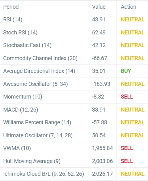 The momentum indicators show a state of balance between positive and negative movement. The Relative Strength Index (RSI) shows an active value of 43.91 which indicates that Ethereum has reached a state of balance between buying pressure and selling pressure.