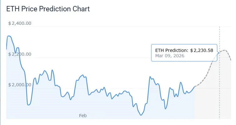Price models suggest that ETH could soon see a rebound. Forecast data indicates that ETH may reach $2,230.58 by March 9, 2026 which represents a 10.95% increase over the next five days. The market rally will depend on both market sentiment and technical levels.