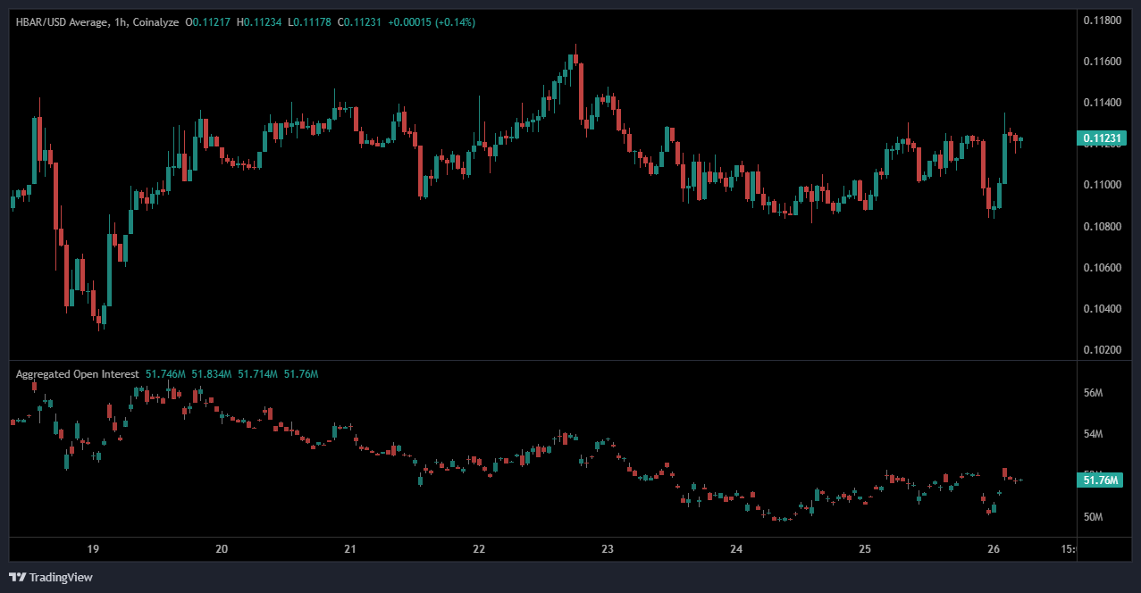 According to Hedera Price, the 24 hour chart shows that the day was relatively stable and there was moderate intraday volatility.The token was seen trading mostly in the range of $0.108-$0.113, which supports the general trend of consolidation. The initial gains were met by a regulated backlash which probed the lower limit of the range at about $0.109.