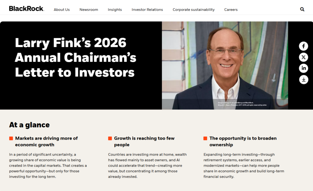 Fink highlighted the fact that tokenization can play a role in promoting broader participation by helping people access investment markets more easily. He noted that access to investment markets remains an important issue, considering that a majority of people still lack access to such markets. Fink noted that long-term investment remains a key aspect in helping people benefit from economic growth over a long period.