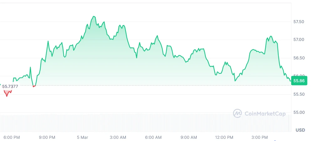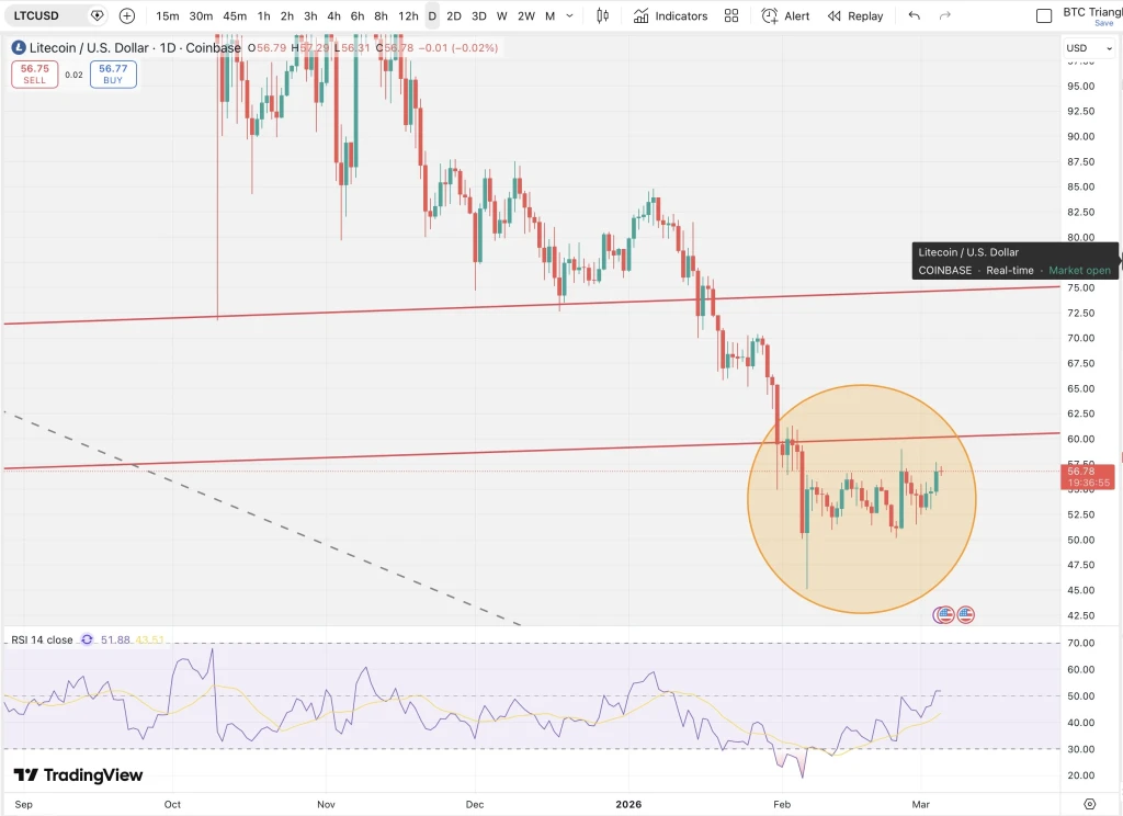 Litecoin (LTC) is currently holding around the $56 mark, consolidating after its recent gains as traders hold their positions at key levels of support. On March 5, 2026, a new LTC/U trading pair was launched on Binance, providing traders with an additional route to trade digital currencies.