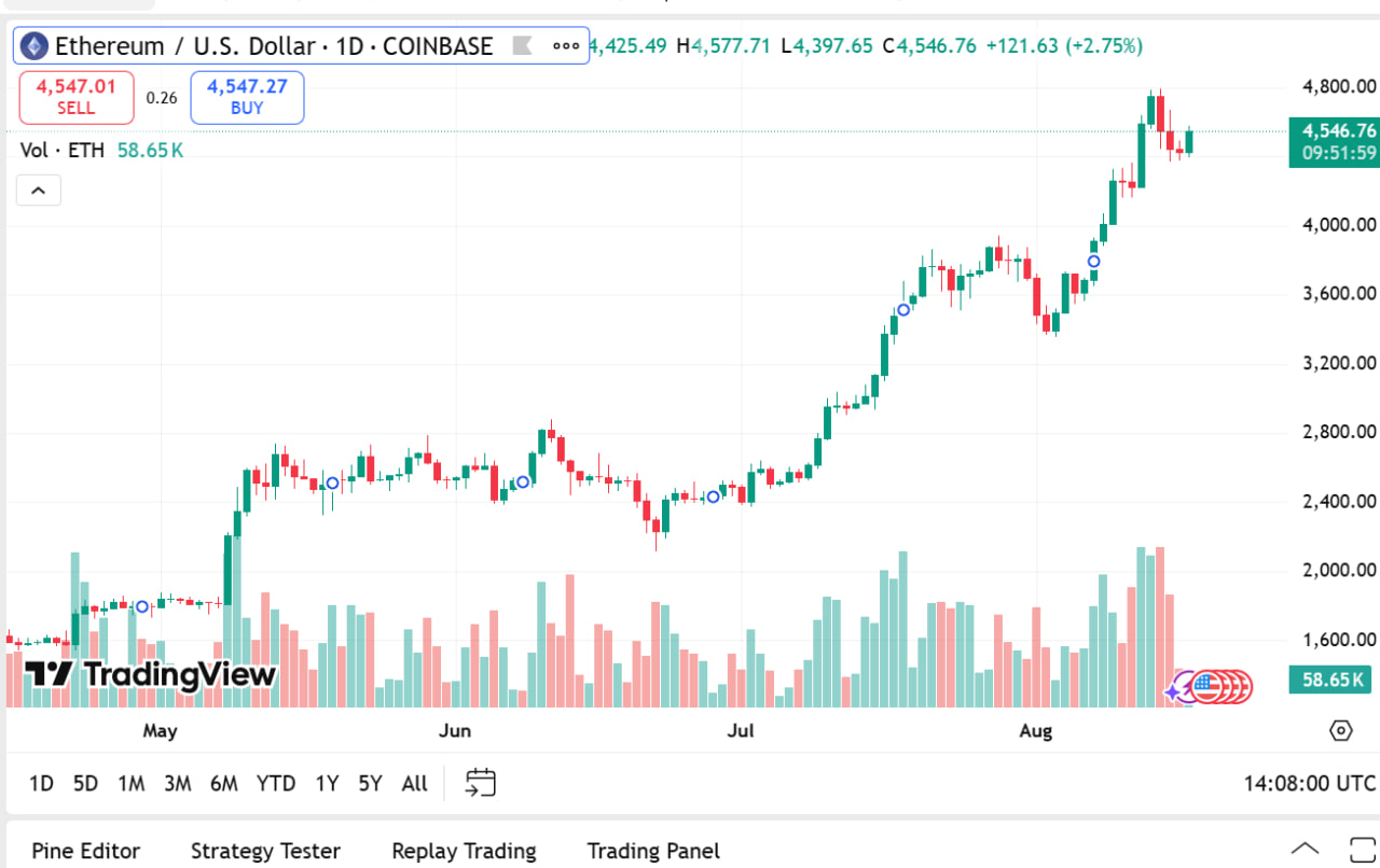The Ethereum price currently stands at around $4,524.89 with a 2.23% increase. Its market capitalization is $546.62 billion and its daily volumes declined 46.16% to $26.33 billion. The mixed outcome points out the uncertainty of the DeFi project environment as investors look for the next big altcoin 2025 that guarantees lower gas fees and scalable real-world applications.