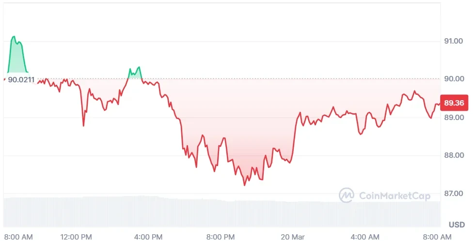 Solana (SOL) is currently trading at $89.36 on Friday, March 20, posting a 0.93% daily decline amid falling trading activity. This shows weak momentum, while traders monitored key resistance levels and indicators to assess whether the asset could regain strength.