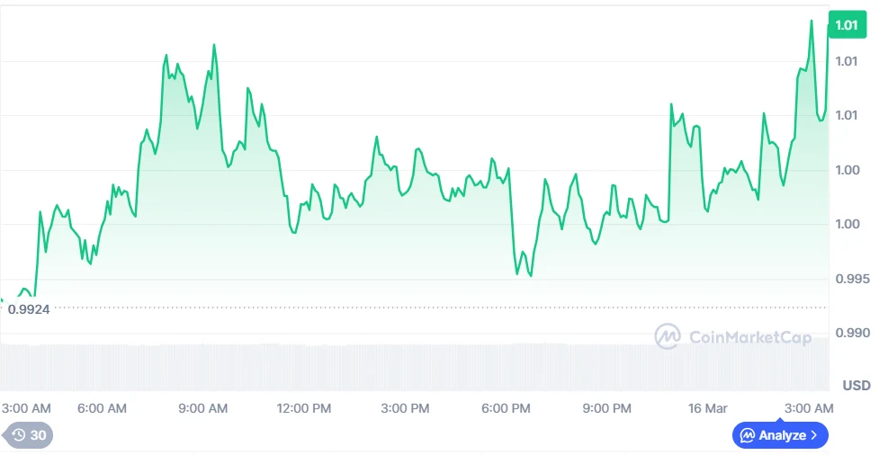 Sui is currrently trading at $1.01, rising 2.35% over the past 24 hours on a trading volume of $317.55 million, up 8.51% from the previous day. Over the last seven days, the token has held steady at $1.01, gaining 14.17%, reflecting growing stability amid broader market fluctuations.