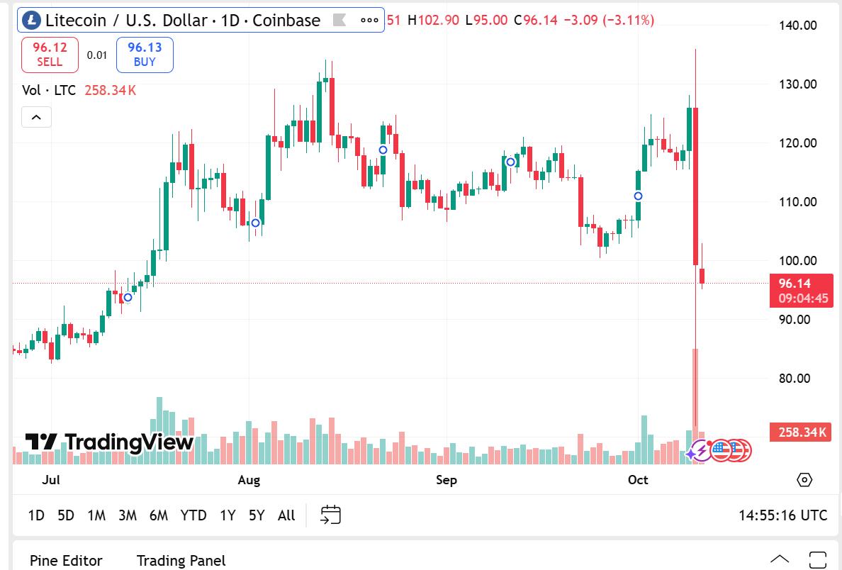 Litecoin is currently selling at $96.12, after losing a significant 24.18% fall in the last 24 hours, with a trading volume of 87.39% losing about $3.86 billion. The rally is a reflection of a new spurt of liquidity as speculators anticipate increased activity in the coming months.