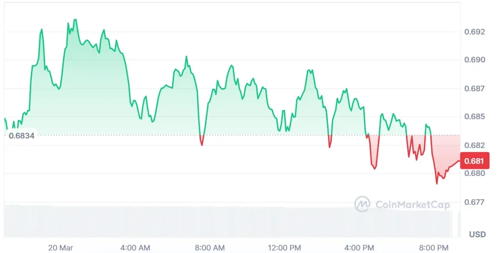 However, the token remains near the lower end of its range. The focus in the market is on whether $0.68 holds. This level currently represents the dividing line between continued consolidation and a deeper decline.