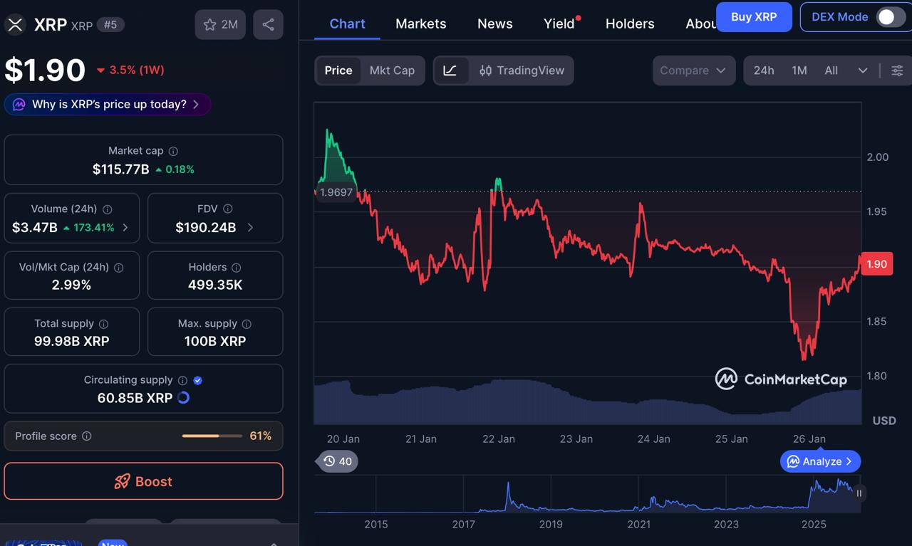 XRP is experiencing significant technical shifts as January 2026 progresses. By January 21, the coin was trading around $1.89, even after a $40.36 million long squeeze on January 19. Institutional appetite remains high, with spot XRP ETFs seeing $1.37 billion in net inflows. This support is a cornerstone for every current XRP price prediction 2026. With exchange supply at multi-year lows, analysts foresee a supply shock driving prices higher.