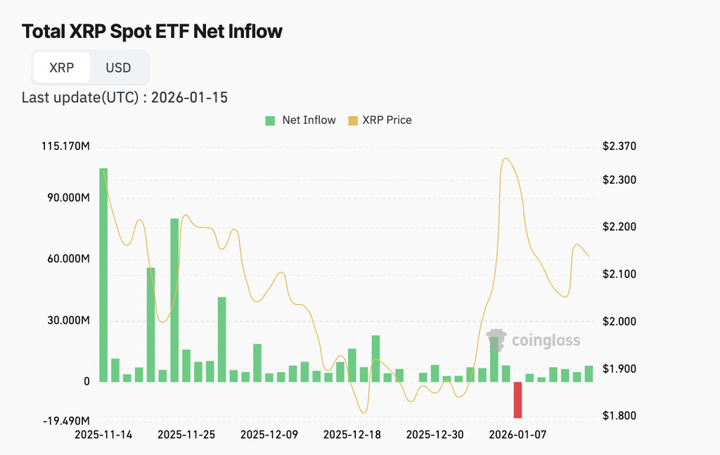 U.S. spot XRP ETFs currently hold roughly $1.5 billion, or 1.21% of total supply. Weekly inflows of approximately $55 million help buffer selling pressure.