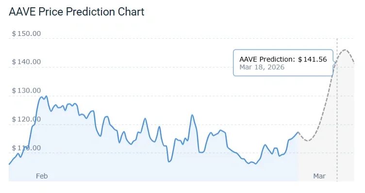 AAVE strengthened its position against Bitcoin by achieving a 2.40% increase in its daily trading value against BTC. The analysts now predict that the token will reach $141.56 on March 18, 2026 which represents a 20.57% increase from its current price. The asset shows an overall mixed pattern of movement.