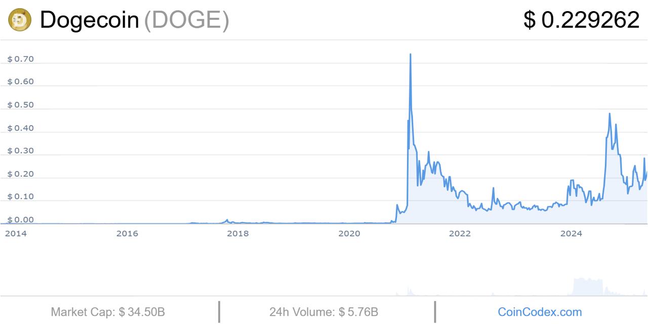 The Dogecoin price mounted a remarkable rally during the 2021 bull market, generating outsized returns for early holders. Between March and May that year, DOGE surged over 20x, from $0.003 to an all-time high of $ 0.73.
