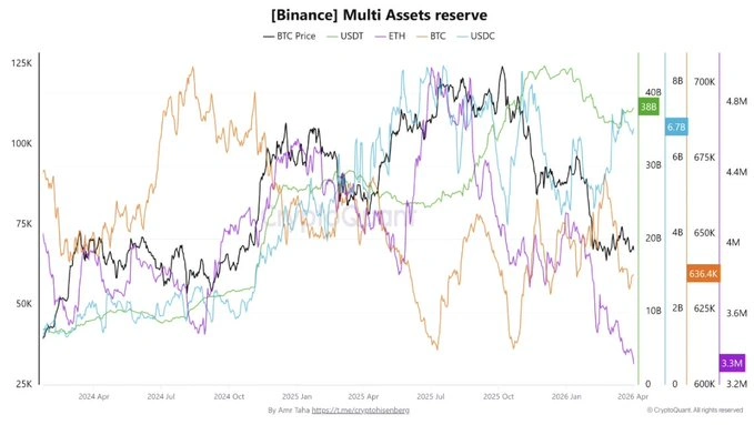 The numbers support this view. Bitcoin reserves have also declined, dropping from 670,000 BTC in February to 636,000 BTC in April. The situation extends beyond Ethereum to encompass all digital assets. The situation extends beyond Ethereum to encompass all digital assets.
