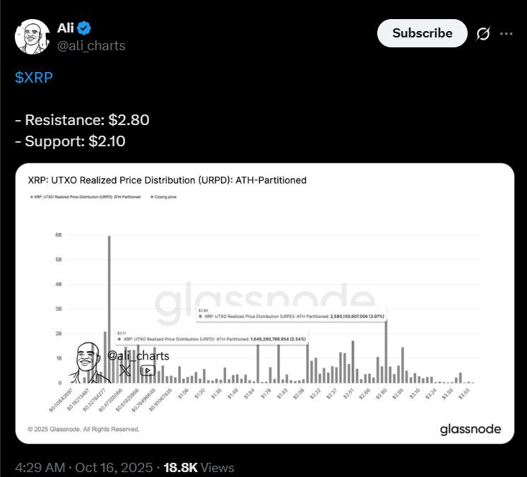 According to Ali Martinez, XRP’s resistance zone is at $2.80, while its support is at $2.10. So, experts say that they need to see where the XRP price goes first and if it holds and breaks to determine if a rally or a downturn is in the books for this top 5 cryptocurrency.