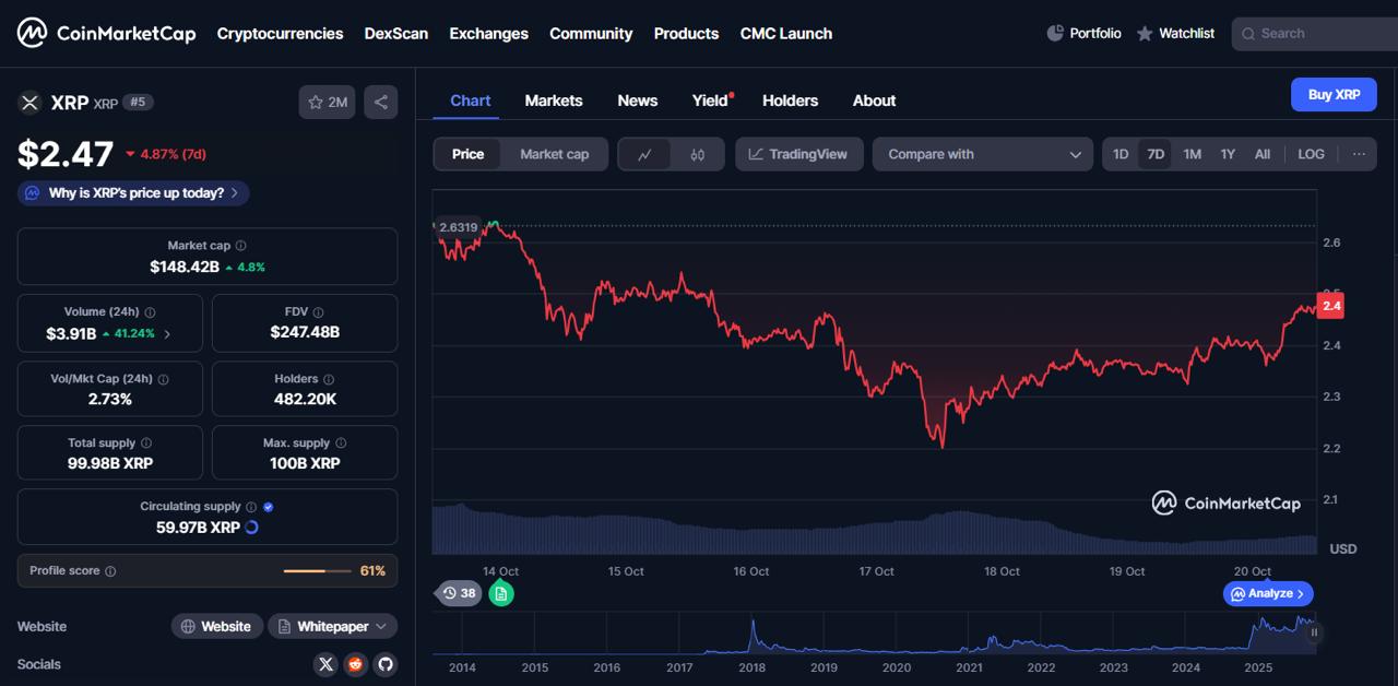 As for XRP’s current price, it’s trading around $2.47, down by 4.87% in the last week. XRP’s price chart shows an improvement in the past week, as XRP’s price seems to be slowly retracing its losses from the crash in October.