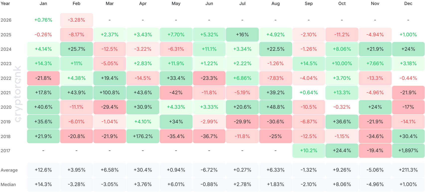 On the monthly performance chart for TRX from Cryptorank, April appears to be the historically best month for TRX returns; e.g., TRX increased 176.2% during April 2018 alone (the highest historical return).