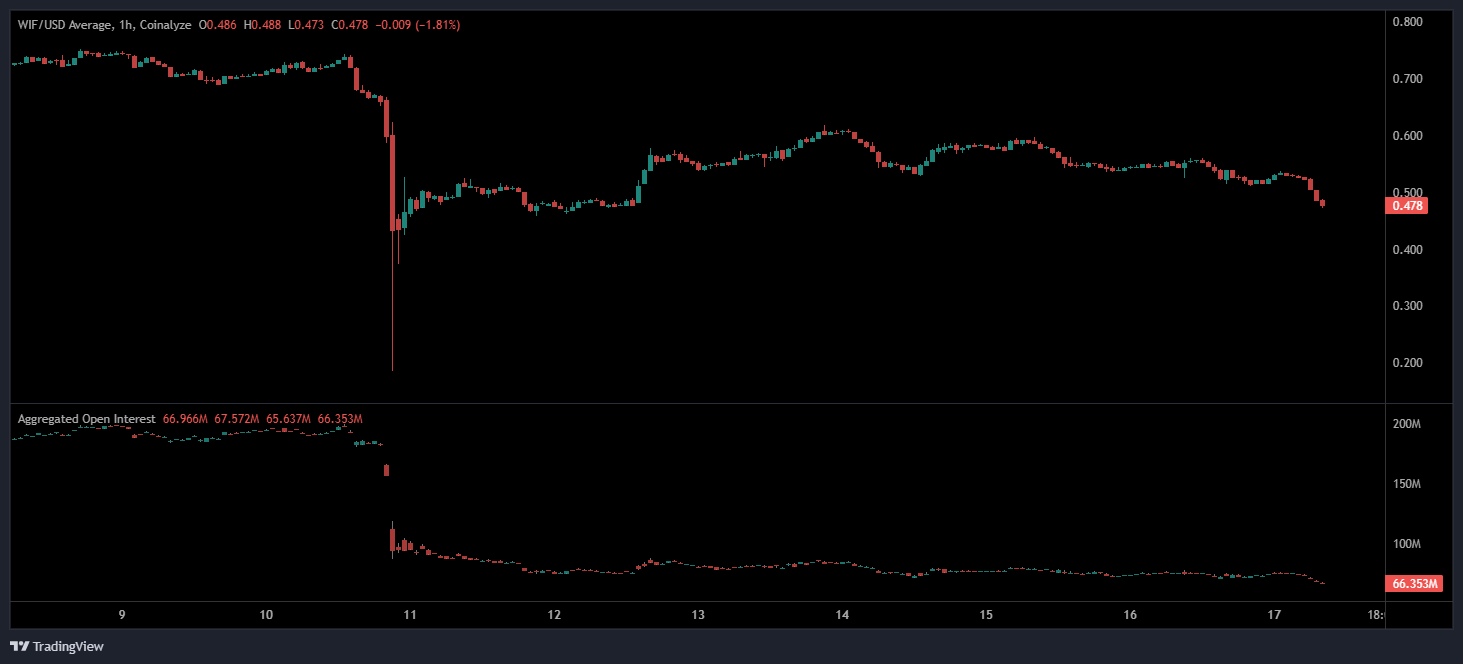 Despite the steep 24-hour loss of over 12%, WIF maintains healthy trading activity with over $310 million in daily volume and a market capitalization nearing $482 million. While sentiment remains subdued, the coin’s stability above its local support zone highlights quiet buying interest among longer-term participants.