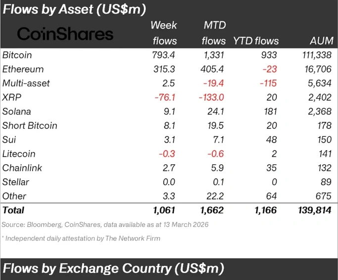 The latest CoinShares report shows that XRP-based exchange-traded products experienced net outflows worth $76.1 million during the week that ended on March 13.