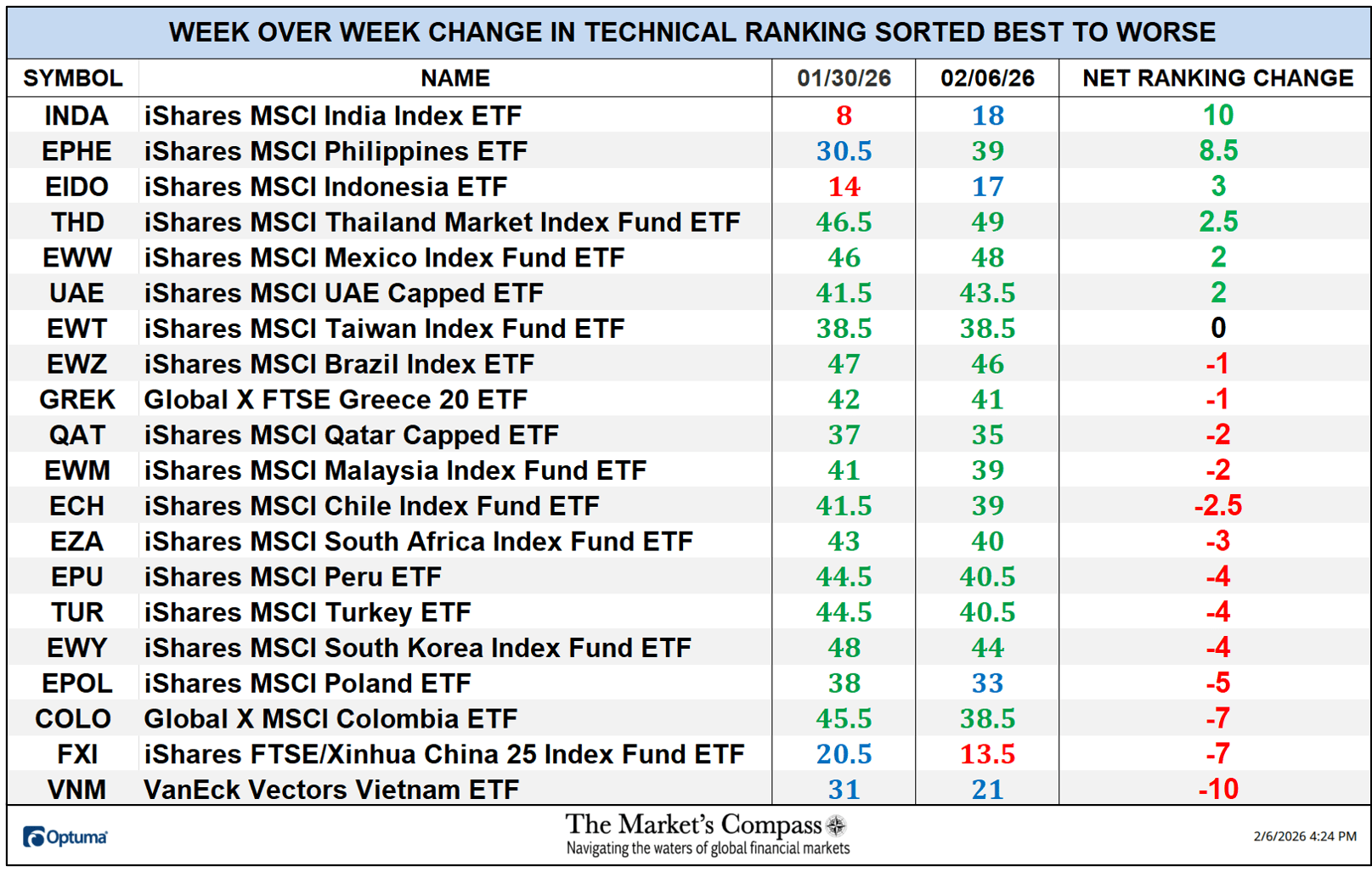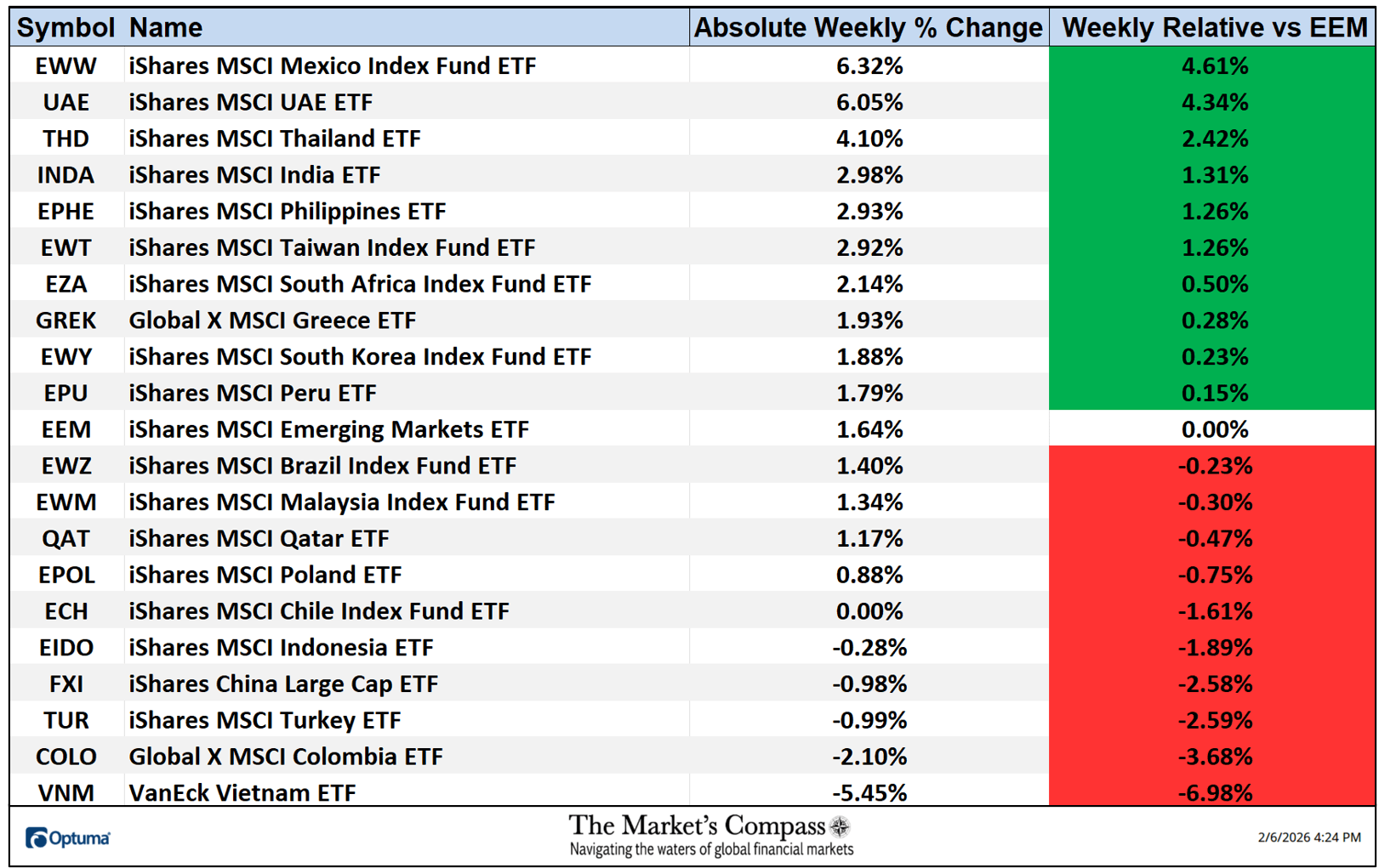 Welcome to The Market’s Compass Emerging Market’s Country ETF Study, Week #579. As always, it highlights the technical changes of the 20 EM Country ETFs that I track on a weekly basis and publish every third week. Paid subscribers will receive this week’s unabridged Emerging Market’s Country ETF Study sent to their registered e-mail. Past publications can be accessed by paid subscribers via The Market’s Compass Substack Blog. Next week I will be publishing The Market’s Compass Developed Markets Country ETF Study. On Sunday I published the latest edition of The Market’s Compass Crypto Sweet Sixteen Study which I publish on a weekly basis and tracks the technical changes of sixteen of the larger capitalized Cryptocurrencies.
