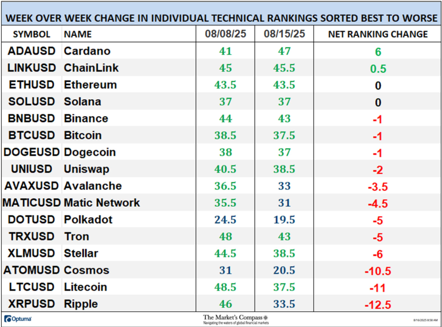 *The technical ranking system is a quantitative approach that utilizes multiple technical considerations that include but are not limited to trend, momentum, measurements of accumulation/distribution and relative strength. The TR of each individual Cryptocurrency can range from 0 to 50.