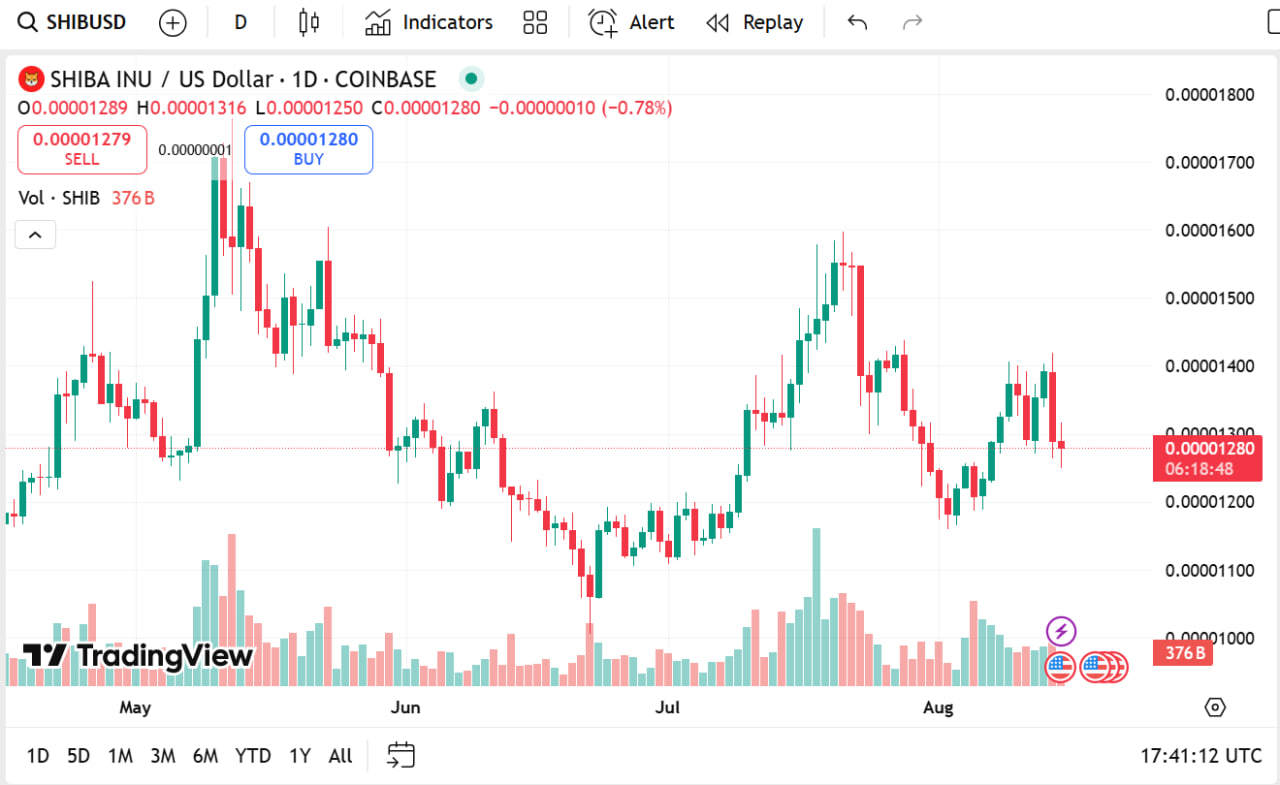 Shiba Inu trades at $0.00001267, losing 1.46%, with a market cap of $7.49 billion, and daily volume of $270.6 million, down 36.63%.
