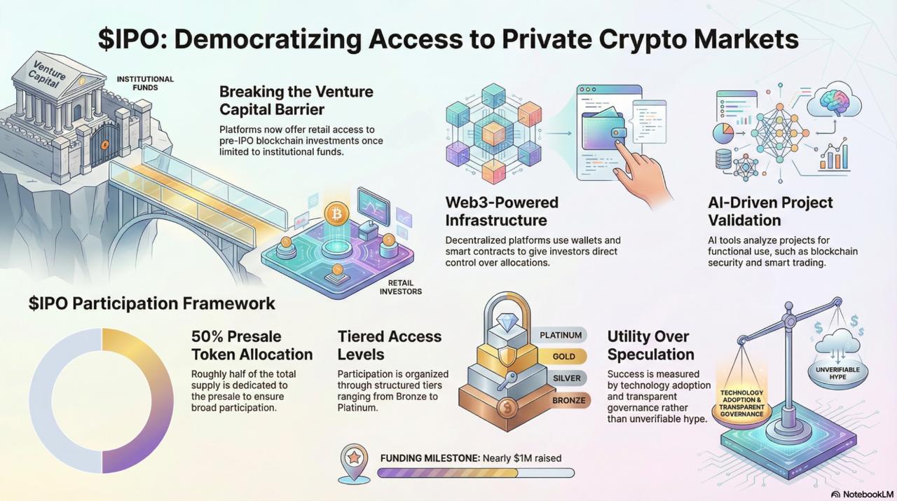 $IPO illustrates the shift toward democratized private markets in crypto. Early-stage crypto investment now prioritizes functional utility and secure participation. Web3 investing platforms are making private market access transparent and accessible. By focusing on education, tokenomics, and technology-driven analysis, investors can engage responsibly without chasing hype. The private market is evolving, and $IPO demonstrates how retail investors may participate in early crypto opportunities.