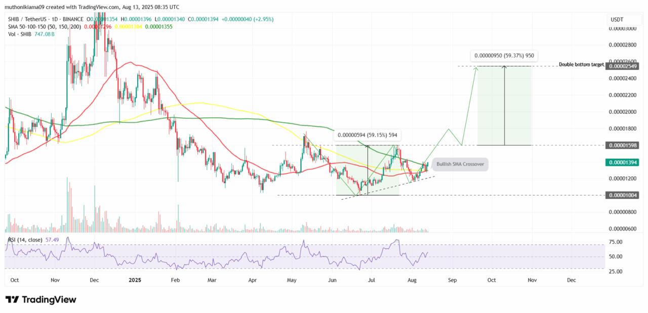 The Shiba Inu Price remains supported by technical factors, with a 50-day and 150-day SMA convergence suggesting upward momentum. Burn initiatives continue to reduce circulating supply, while whale accumulation adds buying pressure.