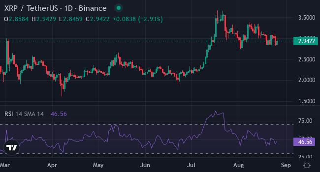 XRP trades between $2.83 and $3.17. The token slipped 4.06% in the past 7 days and 7.23% in the past month, yet it still shows a 33.60% gain over 6 months. This mix of short-term weakness and long-term strength keeps traders alert.