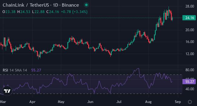 LINK trades in a band between $23.52 and $28.00. The token fell 6.51% this week after soaring 30.96% over the past month and 57.89% across six months. Momentum cooled, but the big picture stays positive. Bulls are digesting gains and sellers have yet to push price below the lower $20s.